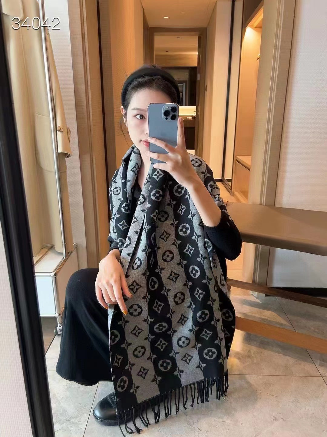 LV 3色の高級ピュアカシミヤフリンジスカーフ【50%割引+送料無料】