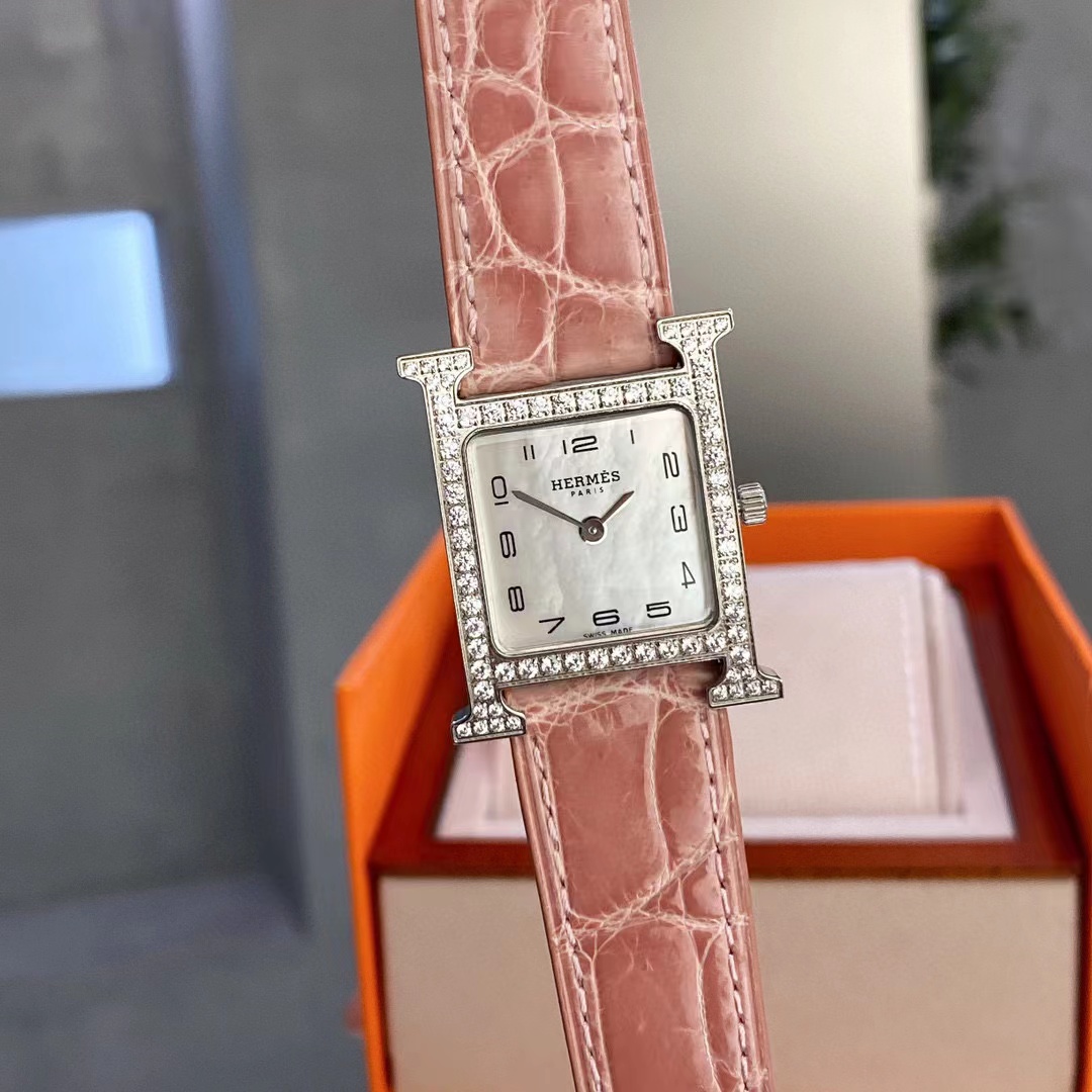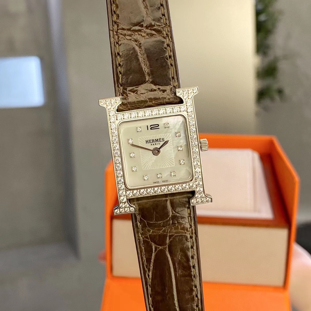 HERME5 高品質ダイヤモンド スクエア アリゲーター レザー レディース 腕時計【50%割引+送料無料】ams